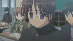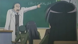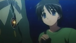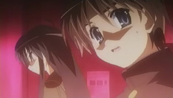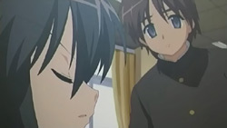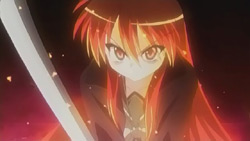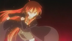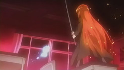 At school, Shana replaces the now-gone Hirai, except that she’s now masquerading as Hirai. Yuuji gets pissed off at her for that, but that only attracts negative attention to himself from his classmates. Marianne (the doll) comes to school in order to attack Yuuji, but Shana transforms and defeats her. Friagne, her master, appears and introduces himself to Shana, but disappears before they can fight. The damage that Marianne and Shana caused has injured everyone in the room, so Shana wants to use Ike’s life to repair the damage, but Yuuji has her use his own lifeforce instead. That night, he finds Shana on the rooftop and offers her some coffee. As he leaves, she sees his dim torch flare up again, surprising her grealy. Elsewhere, several people have arrived in the city, including an old man and a large breasted woman with a talking book.