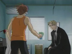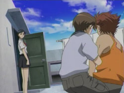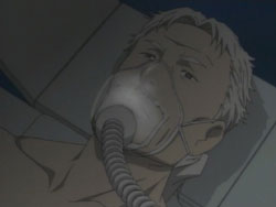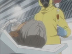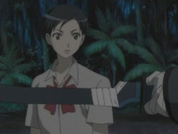 After learning of George’s capture, the group led by David decides that they’re going to go get him. Saya overhears a frustrated Kai tell Riku that Saya is different from them. After David reports back to his superiors, Julia shows him some documents that indicate a DNA sequencer has been delivered to a research facility, and the two suspect something is occurring there. Kai walks by while the two are talking and bursts in. David takes him to the roof and shows him how weak he his by dodging his attacks and beating him up a bit in from of Saya and Riku. As Saya is leaving with David to save George, Kai pleas to her that they should go together, but Saya says that Kai shouldn’t go because if anything happened, he’d be a hindrance. Completely defeated by her words, Kai has no choice but to stay. That night, the group, including Hagi, travels to the facility through a forest, arriving at their drop-off point where Lewis meets them with some weapons and information. Before taking her sword from Hagi, Saya finds a ball of onigiri in the trunk addressed to her from her brothers, telling her to do her best. Meanwhile, the US military has been ordered to get rid of the facility, and in the facility itself, George wakes up to the noises of something walking around, something that looks like a Chiropteran.