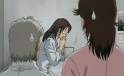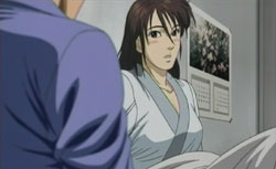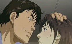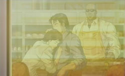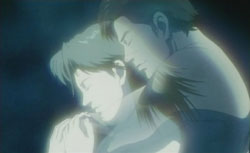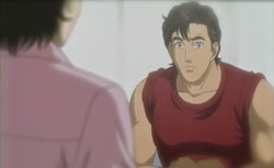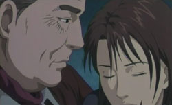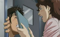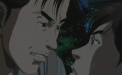 As dawn approaches, Lee Taijin carries his daughter through the streets, and sees her smile through her sleep just as Ryo and Shin Hon arrive back – Ryo proclaims that it’s like the smile of an angel. Inside of her, Kaori reminds Shanin that Ryo can give that same warm feeling that comforts her now. Shanin realizes that she wants Ryo to become her father, and wakes up calling him Papa. Ryo goes to the Cat’s Eye to think about the entire father thing and is in a bit of a daze until Shanin arrives. Their conversation reminds him of one he had with Kaori about how the recipient of a transplant from Kaori would be like her child. Ryo decides to be act as her father, and Shanin hugs him for the warmness and security that she longs for.