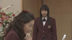 Not only has Tsukushi’s father been laid off, the family is also 5 million yen in debt. In order to find work, Tsukushi takes a leave of absence from school, which alerts the F4 that she’s in trouble. Looking for work one day, she’s approached by a man offering 100,000 to photograph her in her uniform. Of course, Tsukushi finds out too late that it’s a scheme to get her to do a pornographic film, but fortunately, Rui finds her and saves her. Rui later suggests that it might be the Domyoji matron who’s responsible for their financial troubles. Returning home, she learns that her parents have had no luck searching for jobs, and it seems clear to Tsukushi that something else is at work here.