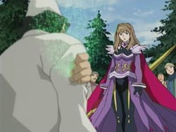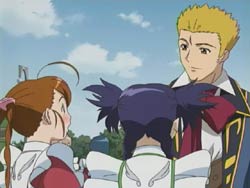 They do a great job paralleling Mai’s story (should be pretty safe to call it Mai’s story now) with Akane’s. Both girls had to make decisions between love and being an Otome, and it turned out differently for both (as Sergay notes, it’s one way of life). In Mai’s story, it’s noteworthy to point out that the profile of her lover really looks like Sergay or even Tate. I say Tate because unless they introduce some really complicated relationships from their younger years (something like SergayXMai and SergayXRena and Natsuki thrown in there somehow), there’s a chance that Sergay has a relative or ancestor who resembles him. And plus there must have been some reason for them not to have used Tate’s name yet. And while we’re on the subject of Sergay, I gotta admit that I’m a bit concerned about how they’re setting Arika up to like Sergay, but I guess we’ll see where that goes.