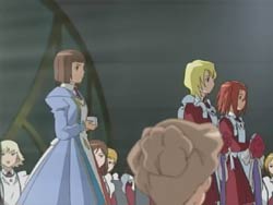 The ceremony to appoint Akane’s master soon arrives. But in the middle of the ceremony, just as Akane is about to put the ring onto her new master’s finger, Kazuya bursts in to stop them. He declares his love and says that he’d throw away everything for Akane. After apologizing to her would-be master, Akane jumps into Kazuya’s arms for a kiss. The two then take their leave. Afterwards, Sergay tells Nina and Arika that throwing away a dream for love is one way of life. Nina declares that she’s definitely going to become a Meister Otome, but Arika isn’t so sure anymore. Arika actually remembers what Akane told her about her feelings of love, and realizes that maybe she has feelings for Sergay.