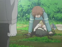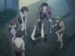 In orbit, an explosion occurs on the spaceship and it starts a descent course for Earth. At the Osaragi home, Hazumu’s parents are worried for Hazumu, but his teacher Tsuki Namiko (who’s had no boyfriend for her 35 years), vows to find him. Unfortunately, she falls into the hole in front yard before she could get very far. Back on the mountain, Yasuna is replanting some primula flowers that she and Hazumu originally grew at school, but the painful memories are too much for her and she starts to cry. At the base of the mountain, Asuta, Ayuki, and Tomari are still searching for Hazumu. Tomari is particularly concerned because she knows that Hazumu has always been very sensitive, and she also feels responsible for his pain because she encouraged him to confess.