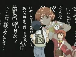 Yasuna reveals that she can’t see males, starting with her father when she was a little girl all the way until now. She had resolved to live alone, but then she found Hazumu – the one boy she could see. Though changed her entire world, she was still afraid – afraid that he’d disappear from her view someday, just like her father. That was the reason she rejected his confession, even though she had regretted it and blamed herself. But then Hazumu came back as a girl who wouldn’t disappear. Yasuna says that she’s liked Hazumu ever since they first met and hold only Hazumu in her heart. At this point, Yasuna breaks down crying and runs out, but after taking a fall and regaining her senses, she returns to the classroom with a determined look on her face. She whispers into Hazumu’s ear that she doesn’t want to have any more regrets, and then kisses Hazumu. Returning from her supplementary classes, Tomari is shocked when she catches the two in the act.