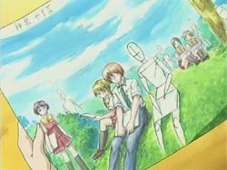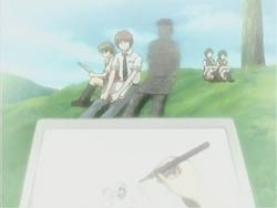 Hazumu freaks out when Sora asks her what she’s going to be about Yasuna’s confession and love. With the topic on her mind, she goes and asks Asuta if he has someone he likes. But Asuta takes so long trying to figure out what she means that she assumes he has no interest in love. In front of the school, Tomari notices that Yasuna is waiting for Hazumu to arrive. By the shoe lockers, she overhears Yasuna asking Hazumu if she wants to draw together during the sketching event. Tomari decides to intervene and asks Hazumu to do the same thing. Hazumu doesn’t answer Tomari, since she had already agreed to Yasuna’s request, and instead looks rather uncomfortable between the two girls. During biology class, Sora notices that Yasuna acts strangely around the boys. Indeed, Yasuna had trouble figuring out which boy dropped his notebook beside her seat. Sora goes with Hazumu to the art room and the two find Yasuna’s picture from the last sketching event. It features several girls, but all of the boys except Hazumu are drawn as abstract shapes. It confirms Sora’s suspicions, but only makes Hazumu more confused.