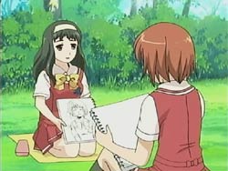 When the day of the sketching event comes around, Yasuna and Tomari both want to draw with Hazumu, so all three end up together. Hazumu is thinking about drawing the scenery, but both the other girls want to draw Hazumu instead. The situation becomes awkward, and Tomari makes it worse by again reminding Yasuna that she hurt Hazumu and confronting her about the confession. Hazumu stops Tomari from continuing her harsh words, but the damage has been done. When Hazumu asks Yasuna to go home together after school, Yasuna shakes her head no. Yasuna feels like she doesn’t deserve to be beside Hazumu, but Hazumu tells her that she saw the picture from the last sketching event. Hazumu feels that she doesn’t know anything about Yasuna and wants to learn more.