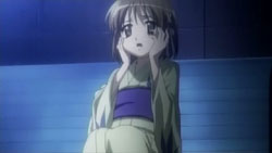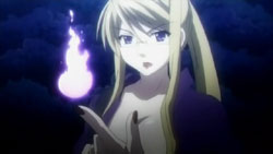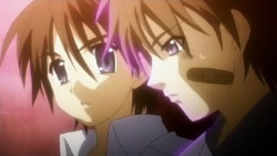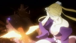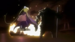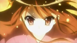 By the time everyone gathers again, morning has arrived. Khamsin uses the image of the town from Kazumi’s mind to correct the distortion. It’s a warm image that causes Yuuji to start crying from feeling that he belongs there and remembering Kazumi saying that he’s human. Shana runs off because she’s feeling more and more distant from Yuuji, but trips on the pavement. When she raises her head, she sees the face of an old friend: Wilhelmina.