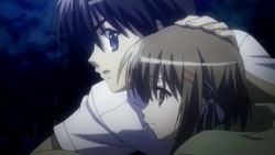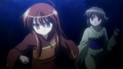 Shana confirms to Kazumi that she indeed a Flame Haze, and then is about to abandon her to go look for Yuuji. However, Alastor reminds her that her duty is to bring Kazumi back to Khamsin. Inside the fuuzetsu, Yuuji and Satou tell each other about their situations (i.e. Yuuji is a Misutesu, Satou and Tanaka are under Margery). Yuuji mentions that the real Sakai Yuuji is already dead. The two end up going their separate ways because of their different tasks – Satou is headed to Friagne’s old hideout and Yuuji is going to find Kazumi. At that time, Kazumi is being pulled along by Shana. Kazumi thinks to herself that even though Shana knew about Yuuji being a Torch, Shana still liked him. Kazumi trips, but decides to ditch her one sandal and run along without Shana’s help.