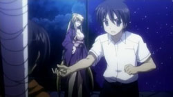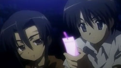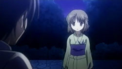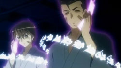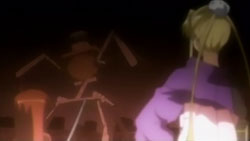 Yuuji finds Khamsin just shortly after Margery does. After confirming that the monocle is indeed Khamsin’s, Yuuji admonishes the Flash Haze for dragging Kazumi into all this. Kazumi and Shana emerge from the bushes where they were overhearing him talking about her. The group’s attention goes back towards the happenings around them, and Khamsin thinks that they need to start tuning soon. But when he and Kazumi try to, the procedure fails because the Jizai Shiki is interfering with the markings. Margery receives a call form Tanaka and Satou. From the map, the two report that there is a concentration of the Jizai Shiki back at the festival. With the intent of destroying the Rinne at that place, Shana and Margery head off.