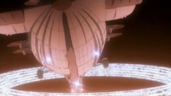 After Shana attacks it, the professor’s robot transforms the festival’s yagura into a giant robot. With Yuuji’s help, they figure out that the airship high above the city is the final piece of the puzzle. When Shana and Margery fly up to attack it, the professor calls for his robot to combine with the airship. The two Flame Haze hastily make their retreat after getting word that Khamsin is taking the form of a stone beast. It chucks a rock that sends the airship crashing into the water below. On the ground, Yuuji and Kazumi are on the ground from taking cover. When she asks if his situation is irreversible, Yuuji reaffirms that he’s already dead. But Kazumi believes that Yuuji is still human because his body and heart are still warm. And, as she confesses, that’s the Sakai that she likes.