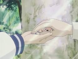 Tamao gets called away, so Nagisa has to return to the dormitory alone. However, she spots the same girl who kissed her earlier and follows this girl into the woods. Unfortunately, she loses sight of her and realizes that it’s almost six o’clock. Nagisa rushes back, but makes it just as the gate closes. One of the sisters (the matrons of the school) has to let her in. She gets disciplined, but is then saved by the student council president of St. Miatre, Rokujou Miyuki. Miyuki mentions the Étoile, who is the leader of the students of all three schools. The three girls head to the dining hall where the buzz is all about the new student. All eyes are thus on Nagisa when she enters. However, Nagisa mistakes one of the upper-classmen as the Étoile, when in fact the real one is standing right behind her. It’s the same girl who kissed her forehead from before – Hanazono Shizuma. Shizuma leans in to kiss Nagisa, but gets interrupted by Miyuki because it’s time to lead the prayer before dinner. After she finishes, Shizuma opens her eyes and winks at Nagisa.