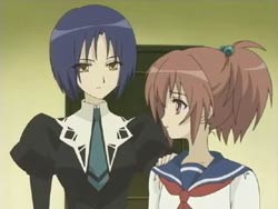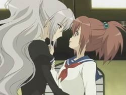 On her first day, Aoi Nagisa climbs up Astrea Hill to reach her new school, St. Miatre Academy. On the path leading up, she admires all of the different uniforms (there are actually three schools on Astrea Hill). However, in her rush she accidentally runs down a small hill and into the surrounding woods. She gets lost, but encounters a beautiful girl. This girl hands her the keychain that she dropped, and then leans and kisses Nagisa on the forehead. Nagisa faints and wakes up in the school’s infirmary with a girl named Suzumi Tamao watching over her. She seems to have an interest in Nagisa, and is the one who takes Nagisa’s measurements for her uniform. Tamao, who is in Nagisa’s class, explains that they are fourth-year students here because the school integrates middle and high school. The two other schools are St. Spica Academy to the west and St. Le Rim Academy to the east. St. Spica has the white uniforms while St. Le Rim has the red ones with checkered shirts. Tamao also warns Nagisa that the school locks up after six o’clock at night.