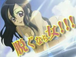 Kawahira Keita, who purpose is to crush evil and spread the truth, fights and defeats a spirit with the help of his inukami Youko. Sometime later, Youko wants to go cherry blossom viewing, but Keita blows off her proposal for a date to go out and look at girls. She catches him and punishes him by magically taking off his clothes in public. That gets him arrested by the police and put in jail. Youko visits him in his cell and reminds him that when they made their contract he had promised to be hers and listen to everything she said. The two are then approached by a special investigator who offers them work. It seems that there’s an evil spirit on the loose who has a grudge against couples and has the power to make clothes disappear. Keita and Youko pretend to be a couple and indeed the spirit shows up…and flashes them. They chase him outside where he initiates his special attack. Keita is eagerly anticipating seeing all the naked girls, but much to his dismay, the spirit’s power undresses only the guys. He’s apparently on a crusade to exterminate all couples, but Keita tells him that he’s made three mistakes. First, there is no woman who doesn’t want to see the man they like naked. Second, if there is nakedness, it should be definitely done to the girls. And third, everyone is not scared of nudity; Keita proves his point by taking off his own clothes. While the spirit is distracted, Youko uses her powers and gets rid of him. In the end though, the naked Keita finds himself back in jail.