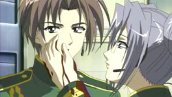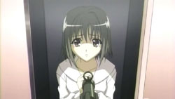 -Ryouta, Sayaka, Shuhei, and Cellaria vs. Karen and enemy footsoldiers. They kill several soldier, Celleria gets shot in the arm, and Shuhei is able to easily hold his ground against Karen. They’re able to get away by locking the door behind them thanks to Kazuhiko at the door’s controls.
