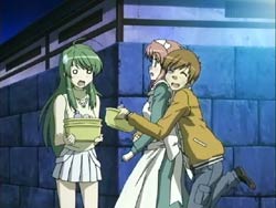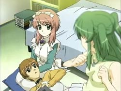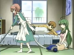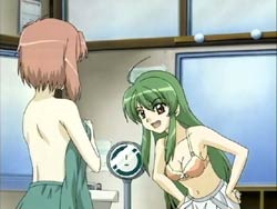 Keita is overjoyed that Nadeshiko is staying with them, but Youko is less than happy. She complains to Hake, and he tells her that she’ll have to put up with it for a week. The fact that Nadeshiko can cook and clean perfectly only pisses Youko off more. Nadeshiko even beats her on breast size. However, a conversation in the bath between the girls about their masters brings them closer together. Unbeknownst to them, they’re being watched by Tomohane and Tayune. Those two report back to Sendan that Nadeshiko is very happy with Keita, but that the one hindrance is Youko. So, in order to keep Nadeshiko with Keita, Sendan decides that they have to get rid of Youko.