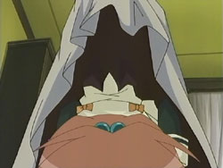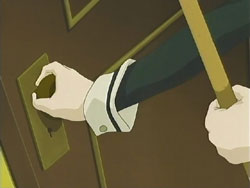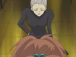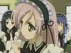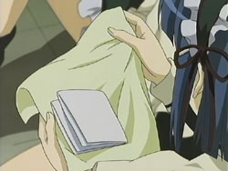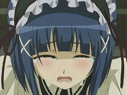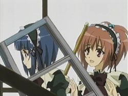 The girls do just that, but get caught that night because Chiyo and Tsubomi were too loud while sneaking to Nagisa’s room. The Sister punishes all six girls by making them clean the school’s clock tower the next day. Chiyo is feeling responsible for what happened, so she starts working immediately, which causes all the other girls to join in. They clean their way up the tower, and at one point Chiyo tries to carry a stepladder and a mop upstairs by herself. She loses her footing and falls, pulling Nagisa with her. Nagisa suffers a cut to her leg from it, so Chiyo uses her handkerchief to stop the bleeding. She starts crying because she’s always screwing up despite her desire to be useful. Nagisa gives Chiyo back the card that she had dropped during the debacle the previous day, the card that Nagisa and Tamao had originally drawn; to Chiyo, this is a very important piece of paper. Nagisa then makes Chiyo cry even harder by calling her a cute little sister. That night, the girls appear to be asleep during an inspection by the Sister. In actuality, all six of them are hiding in the two beds, ready to have the tea party once the Sister leaves.