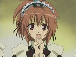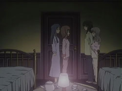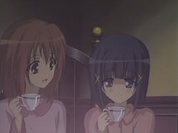 The girls of St. Miatre are participating in a tradition where an underclassman comes to an upperclassman’s room to help out with things such as cleaning. Nagisa and Tamao write their names onto a card and put it a box filled with similar cards of their classmates. The first-year who ends up drawing their names is none other than Chiyo. When she finally shows up to clean their room the next day, the two girls aren’t in. They’re instead getting acquainted with Yaya and Hikari after running into them on the stairs. They also meet Okuwaka Tsubomi, a first-year St. Spica student and a newcomer to the choir. The five girls return to Nagisa’s room, but they don’t know that Chiyo has let herself in already. At the sound of the door, Chiyo gets startled and trips over a water bucket, ruining all the cleaning that she just did. Nagisa enters the room and sees the mess, along with the card she and Tamao had drawn. When a figure wrapped in bed sheets stands up in front of her, Nagisa gets scared and runs outside, right into Sister Hamasaka. What she thought was a ghost was only Chiyo, but as a result, both girls get into trouble. Once they return to the room, Yaya suggests that they all have a midnight tea party.
