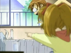 For what Youko did to her in their previous fight, Tomohane is now plotting her revenge, which involves a chocolate cake. She brings it to Keita’s apartment, but Youko’s gone because Nadeshiko convinced her to go to a clinic to get a checkup and some vaccinations. Those two won’t be back until tomorrow. Tomohane decides to come back tomorrow, but then realizes that Keita has her cake in his mouth. After he gulps it down, Karina – the special investigator – bursts into the room chasing after a supernatural badger. It seems that this badger has the special ability of attaching things to each other whenever it flashes its eyes. That’s why Karina has a shoe on his head and that’s why he becomes attached to Keita’s bed after he tries to grab the badger. Keita manages to catch it, but then his stomach begins to rumble. It seems that Tomohane laced the cake with strong laxative. The badger uses his power to attach Keita to Tomohane by the leg and then escapes. Keita can’t immediately chase after it because he needs to go to the bathroom (and he has to drag Tomohane with him).