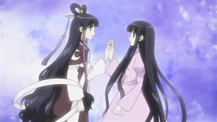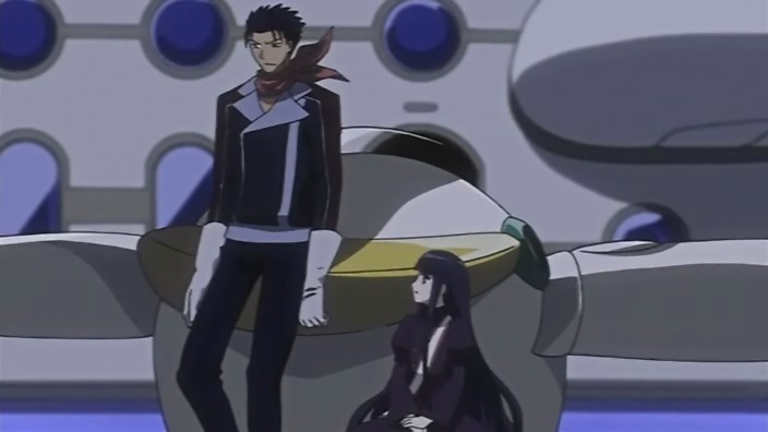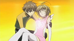 The next day, it’s time for Syaoran and company to leave. Tomoyo promises to Sakura that her company will create the technology to cross over dimensions so that they can meet again. Before he disappears, Kurogane asks Tomoyo, if she has another dream, to tell Princess Tomoyo that he’ll definitely return.