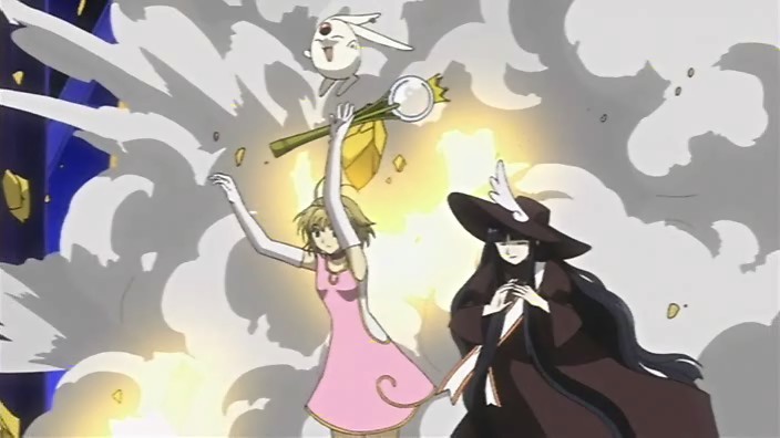 Hrm, it’s a bad sign to me that the animation quality has started to deteriorate. Aside from that though, I don’t have many complaints. The story was different from the manga, but all of the important stuff was the same (though switched around a little). The major addition was the part with Syaoran and Ryuuoh defeating Tomoyo’s secretary. But like I’ve said before, this keeps the plot interesting for those of us who’ve read the manga (and those of you who haven’t won’t know any better). I’m still rather impressed that they managed to cover most of Piffle World (21 chapters worth) in just three episodes.