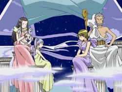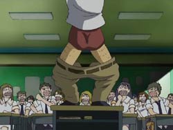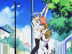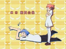 A boy named Kamiyama Samatarou and a girl named Tenko are sitting in class when their teacher asks a question about whether bloomers should be abolished or not. This piques Samatarou’s interest, and makes Tenko wonder if he’s thinking about something strange. Their teacher then goes a bit crazy talking about how much he loves bloomers, even taking off his pants and showing off the bloomers that he’s wearing underneath. Tenko accuses Samatarou of being responsible for this, but it’s actually their father’s doing – it seems that the Kamiyama family is a family of gods and goddesses. Tenko still considers Samatarou to be the one responsible since it was his thought that triggered his father to come and perform the “miracle.” She feels that he’s been getting what he wants since he was little, being spoiled by their father. After school, Samatarou expresses his desire to go home alone. He and Tenko are together so much that the class thinks that they’re going out. One of Samatarou’s friends then comes by and invites him to go to the game center together. Tenko refuses to allow him because according to her, it’s a den of evil. Samatarou gets pissed off because she’s always so bossy – once in a while, he’d like to do what he wants to do. But then, while Samatarou’s sister Misa comes by and keeps his friend busy with her beauty, Tenko drags Samatarou off.