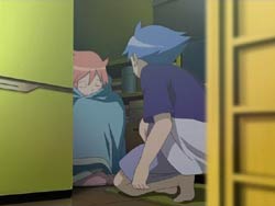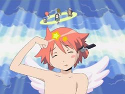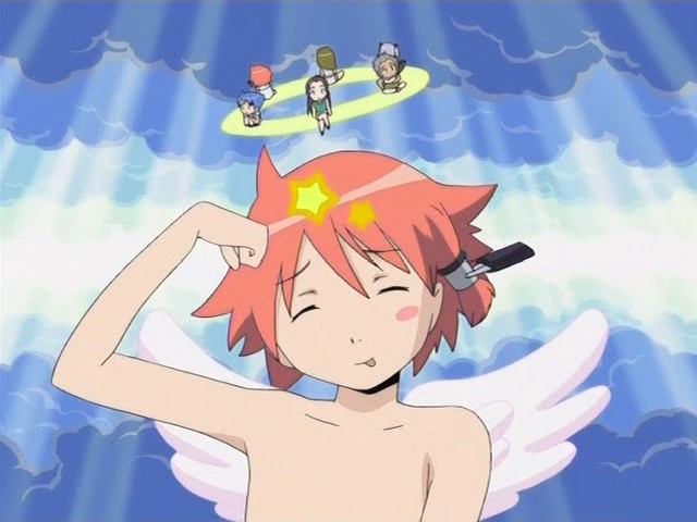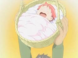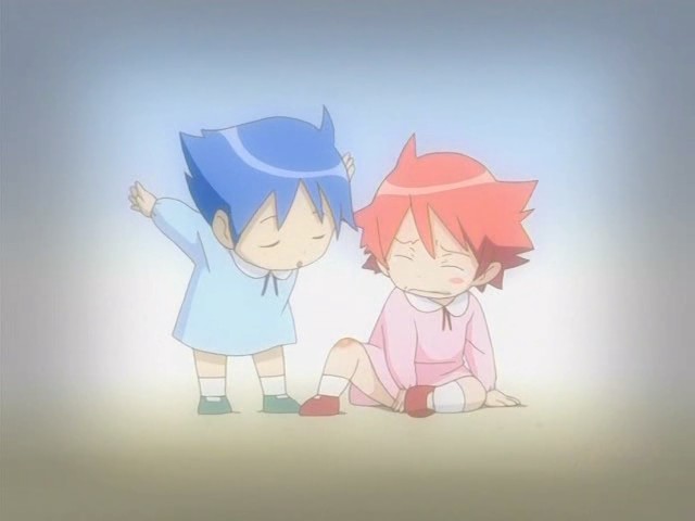 The two end up in the park after Tenko punched Samatarou. Seeing a pair of twins roll by in a stroller, Tenko remembers how they were born in the same hospital on the same day. While Samatarou is his parent’s biological child, Tenko was found outside the hospital. Their father had taken her in and named her Tenko because she was an angel. The two of them have been together ever since then. Samatarou eventually apologizes after seeing Tenko’s smiling face. Tenko thinks to herself that they always end up making up. When they return home, they find that their entire family (father included) is dressed in bloomers. After a really embarrassing bout with everyone having fun (at his expense) at a family athletic meet conjured up by his father, Samatarou spends the rest of the night sulking in bed. He doesn’t show up for the sukiyaki dinner that Tenko prepares, despite the family’s efforts to get him to come out. It’s not until that night, after his parents jump into his bed and take his blanket, that he’s forced to go downstairs. He eats the sukiyaki that Tenko left for him on the table, but then hears her voice. She’s wrapped herself in his blanket, which his father had thrown into the dining room, and is now huddled beside the refrigerator. Samatarou realizes that she had been waiting for him to come down. She appears to be sleeping, but still reacts through her sleep to what he says. After he goes back upstairs, she wakes up and sees that she’s got his blanket around herself, which makes her quite happy.