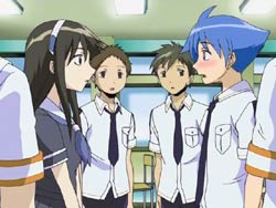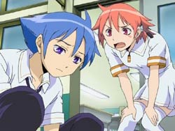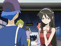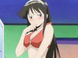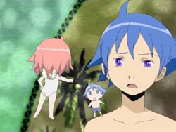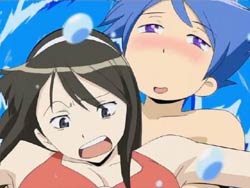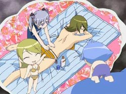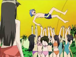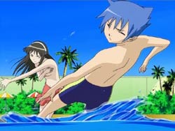 The two of them invite Kumiko and Samatarou’s friend Shinichi, who Tenko pretends to be going out with. Samatarou tries to follow Tenko’s example of holding hands, but he can’t bring himself to do it with Kumiko. In the changing room, Shinichi tells Samatarou that Tenko is actually popular with the boys, and he’s quite happy to be going out with her. The guys get to see that Tenko is wearing a white swimsuit (with small wings coming out of her back) and Kumiko is wearing a red two-piece. They all start to have fun in the water, but soon several girls start calling out Samatarou’s name. More of these girls, who are in love with him, come over and start throwing him up in the air. Samatarou notices that his sisters are sitting nearby, manipulating the girls. They stop after he notices them, but the entire situation reflected poorly on him in Kumiko’s eyes, despite him saying that it was a case of mistaken identity.