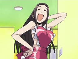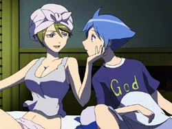 Unable to control the steam coming out of her head, Tenko runs out of the classroom. While she’s off trying to stop it, Samatarou is experiencing a new feeling looking at the girl named Komori Kumiko (who’s only going to be around for a short time). Tenko finally returns from the infirmary, only to find Samatarou talking about a pain in his chest. She thinks that it’s love and convinces Samatarou to go ask Kumiko out. Unfortunately, Kumiko turns him down because she’s still moving in today. Samatarou can’t understand why she rejected him, why god’s miracle didn’t work. Tenko thinks that this is a chance for him to use his own strength and the two decide to keep Kumiko a secret from their family. At home, the two find Mama and Papa wearing nothing but a heart shaped aprons. After Samatarou goes upstairs, Papa asks Tenko if she knows anything about why Samatarou’s heart’s wavelengths went wild today, but she just attributes it to Papa’s imagination.
