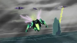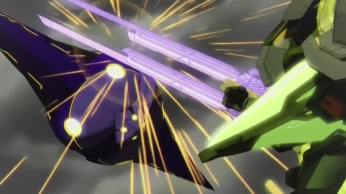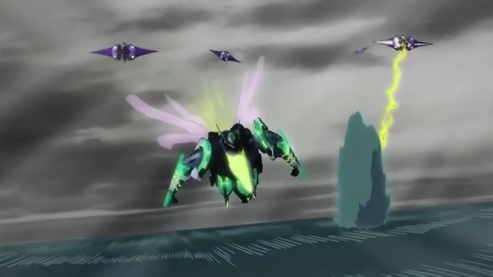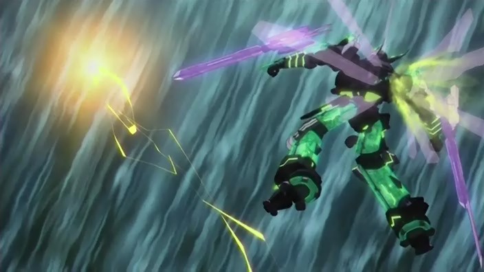 During this time, the Hraesvelg has been trying to hold off the enemies. In the middle of the fight, Arque gets distracted looking at the beautiful ocean, but an explosion jolts her back into reality. With the repairs done, Lu Sheng brings the Garuda out to battle. And with Kyo back, the Altair is ready to fight too. A lively Kyo has May-Yu equip the launcher against their enemies, which have shown themselves very resistant to their beam weapons. But Kyo’s strategy is to fire into the water to create a wall of water. When the enemies blindly fire through the water, Kyo is able to see where the shot came from and leap through to cut apart the enemy ship. Lu Sheng and Chris adopt the same strategy and end the threat. That evening, Ryoko gets a message from Kyo and holds it close to her chest. It’s a message where Kyo admits that he’s an idiot.