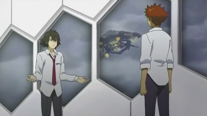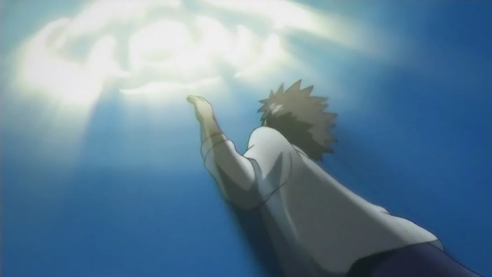 Kyo wakes up back inside the server world. He’s in the infirmary with his teacher and the nurse right beside him. He gets pissed off at the sight of the two getting along so well, since he thinks that love here is now worthless. When Kyo voices that opinion, his teacher asks him if he’s ever liked someone before. Kyo is reminded of what happened at the aquarium with Ryoko and runs out of the room. In his view, no one else understands that they’re not alive. He ends up bumping into Hayase, who asks him about the swimming club. Kyo doesn’t care about that anymore, which surprises his friend who wants to swim again. The windows of the school beside them fizzle and reveal the battle going on in the Zegapain world. Kyo’s cell phone then rings with a mail from Ryoko apologizing for last time. Kyo holds the phone close to his chest and realizes how warm she is. He finally begins to understand about Chris and Arque’s relationship and about what May-Yu had told him before. Seeing that Kyo isn’t paying any attention, Hayase slaps him and tells him to get himself together. Kyo feels the pain and knows that his wounded heart is still there. They’re all still there, still living. Kyo teleports back to the Oceanus and gives his answer to Shima: he’s alive and so is everyone else.