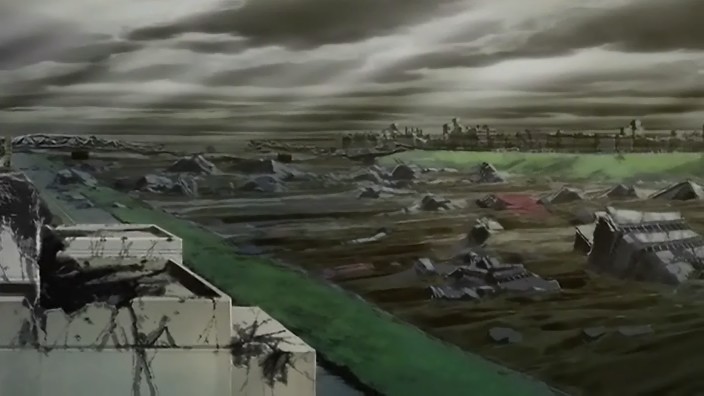 He goes to the bridge where Shima gives him a mission that will show him reality: a trip to Maihama. Minato opposes going there because the enemy could be watching, but Lu Sheng says that you can’t grasp anything without getting your hands dirty. Much to Shizuno’s surprise, Shima names Kyo’s Wizard (co-pilot) to be May-Yu. They launch in the Zegapain Altair into the middle of the Zegapain world’s Maihama. With no enemies around, Kyo gets to see a city completely different from how he knows it. May-Yu takes a sarcastic tone of voice about the ruins, which gets Kyo angry. She reminds him of his attitude when the Shanghai server was destroyed – reality is a lot harsher than he thinks it is. May-Yu then lands the Zegapain by a building and lets Kyo out. A flock of seagulls reacts to the noise and starts flying out, passing straight through Kyo like he’s a hologram.