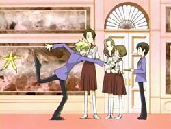The Zuka club ends up being such a polar opposite from the Host Club, yet the two are actually quite similar (same-sex relationships, elaborate get-ups, melodrama, etc). But the contrast is part of what makes it so funny, particularly when the two clubs are just staring at each other. And just for reference, Zuka is short for Takarazuka, which is a type of theater that consists of only women acting. For more information, see the Takarazuka Wikipedia.
