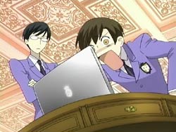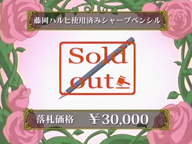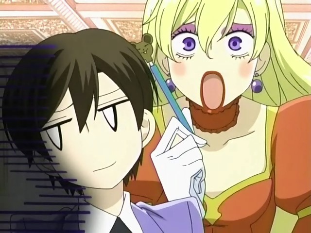 Haruhi tries to refute some of the accusations that Benio levied, including Tamaki’s half-blood, the short history of the club, and the for-profit activities. But as it turns out, Tamaki is indeed half French and half Japanese, the club has only been around since Tamaki started high school, and Kyoya is running payment through a points system which involves internet auctions. Kyoya shows Haruhi the auction for the mechanical pencil she never uses anymore, which had been bought for 30000 yen. Haruhi is furious that they took her stuff and sold it, but the twins claim that it dropped not stolen. Tamaki tries to apologize and give his own bear pencil, but Haruhi doesn’t want it. The Zuka Club decides to leave for today since Haruhi is pissed off, but they promise to come back tomorrow. A still-angry Haruhi also takes her leave.