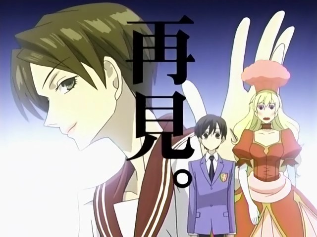 This was an absolute riot, especially the cross dressing parts. Leave up it to Tamaki to plan an entire strategy around offering Haruhi both oniisama and oneesama in one omake package lol. Especially Kyoya’s picture with his 「お母さま?」 (okaasama? – mother?) caption (since the running joke is that Kyoya is the mother and Tamaki is the father). And I can’t help but laugh every time I watch the part with Tamaki mixing the gender signs.