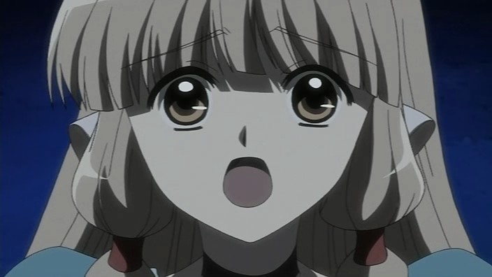 Production quality was higher than usual too. Very solid animation and superb use of the soundtrack in this episode, including the insert song (which wasn’t anything I recognized from the soundtracks and wasn’t listed in the credits). The only thing I have resembling a complaint is that I kind of wish that it was Tanaka Rie voicing Chi (aka. the original voice actress from Chobits) instead of Nazuka Kaori. That aside, this is my favorite episode of the second series so far.