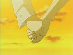 Hikari returns to her room and hugs Yaya, thanking her. Before Yaya can return the button, Hikari takes out the cherry-blossom-colored shell and presents it to her. Overcome with emotion, Yaya kisses Hikari. In shock, Hikari drops the shell on the floor.
