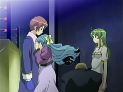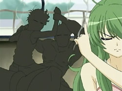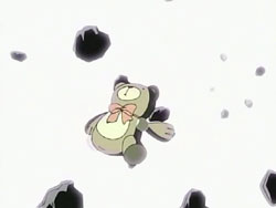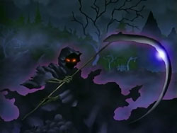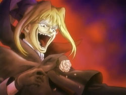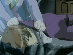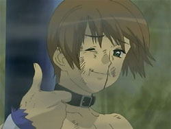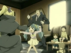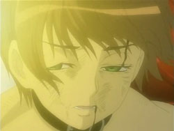Suddenly, the Shinigami shows up, announcing that his name is the “Sea of Violence.” Keita makes him realize that he’s off by a day since Kei’s birthday isn’t until tomorrow. The Sea of Violence decides to leave and come back tomorrow, but Keita stops him so that they can fight. Unfortunately, Keita and Youko’s powers can’t harm the Shinigami, though they do manage to reveal the blonde under the hood. The Sea of Violence announces that it’s slaughter time, but then Youko attacks him. In response, the Shinigami sends her into a bad dream – one involving dogs – since he has control over terror. He does the same for Keita, but Keita manages to break free. The Shinigami then lets loose a blast from his mouth that destroys the entire mansion. Standing in the ruins, he assures the scared Kei that he’s not going to kill anyone today. Keita gets back up and tries to declare that he’ll defeat the Shinigami, but falls back down before he can finish his sentence. After the Sea of Violence leaves, Kei tells Keita to go home and requests that he take Sebastian with them. She bids him farewell, hopes that he can be happy, and then starts singing her song again, resigned to her fate. Keita tells her that he thinks she has singing talent, and she thanks him. In frustration, Keita punches the ground.