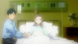 Outside, Choko gets to experience the wonders of snow for the first time. However, she takes a fall and starts sneezing because of the cold. To keep her warm, Haruma gives her his coat and scarf. On their way into town, the two pass by a florist named Ayano that Haruma is acquainted with. In her introduction, Choko makes a point of asserting that she’s her brother’s little sister. Haruma is flustered to see Ayano, but before he can say anything, she’s called away by her telephone. He and Choko continue on to the store where she tries on several outfits from the children’s department and runs up quite a bill. She happily wears one of her new outfits as they continue shopping. During lunch, Haruma shows Choko how to properly hold a spoon. He remembers how when he was young, he had asked his then-pregnant mother about his sister being born every day. He had been so excited to get a little sister, always thinking about how he’d play with her. But then one day, his mother ended up in the hospital, having failed to give birth. In fact, the incident prevented her from ever giving birth again. His mother had cried and apologized repeatedly, so that night Haruma prayed to God for his mother to get well. And since it was Christmas time, he had also asked Santa to bring him a little sister; he had promised to treasure her.