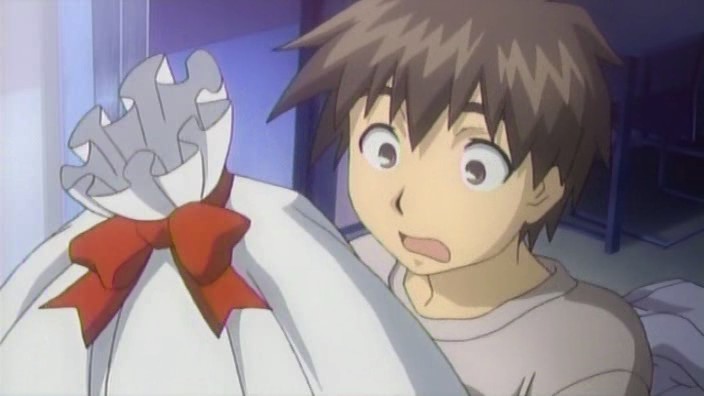 Early on Christmas morning, Kawagoe Haruma is awoken by a knocking on his window. He sleepily opens it and finds a female in a Santa outfit floating on a motorcycle outside. “Santa” gives him a large wrapped bag and makes him sign for what she calls his Christmas present. Inside the bag is a young girl holding a small notebook – Haruma’s new little sister, just like he wished for all those years ago. After Santa leaves, the young girl comes to life. Since she’s in her underwear, Haruma makes her wear some of his clothes even though she thinks that siblings should not be bothered by something like this. He then has to get used to her calling him onii-chan. Embarrassed and at a loss for words, Haruma suggests that they have breakfast. His new sister offers to cook, but she makes a big mess in the kitchen, so Haruma ends up just preparing some bread and coffee. While eating, he asks her about her name, but she doesn’t have one. Given the option of choosing one for her, Haruma decides on “Choko” since she looks in her anchoko (study aid, aka. her little notebook) all the time. Choko likes her new name, so it sticks. Haruma then suggests that they go shopping after breakfast because Choko’s wardrobe is currently a bit lacking.