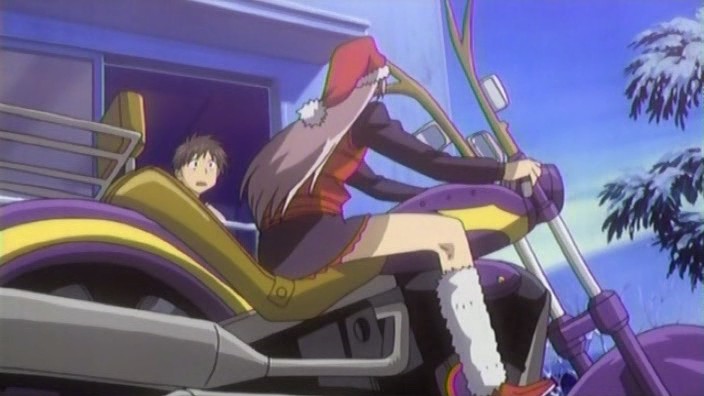So I love the way this story begins with the female Santa and her reindeer motorcycle delivering a little sister. It has a rather magical quality to it. The rest of the series doesn’t quite have that same feel (at least according to the manga), but at least it’s a great way to start.