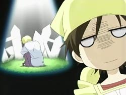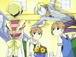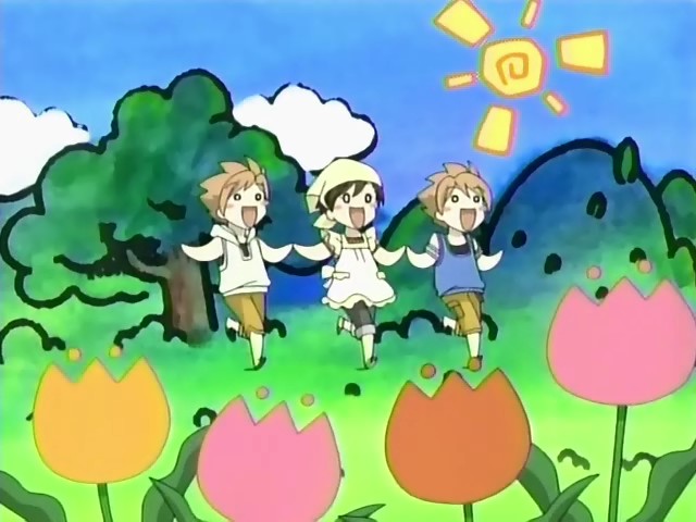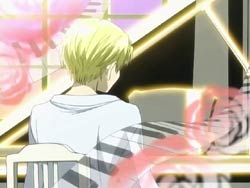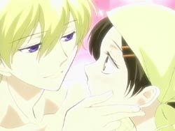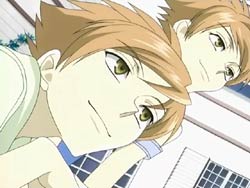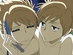 Kyoya ends up advising Tamaki on the one thing that only he can do: piano playing. With the beautiful music attracting customers in, Tamaki seems to be making a comeback. But during this time, some girls open a window and cause a flower vase to fall down right when Haruhi is standing underneath. Kaoru, who was standing beside her, saves Haruhi though he suffers a cut to his own face. Hikaru comes running onto the scene concerned about Kaoru, and their scene of refreshing brotherly love wins them the competition. Haruhi realizes only afterwards that this was probably all part of their strategy. That afternoon, in their new room, Hikaru is still clutching Kaoru’s hand. Kaoru says that it’s ok and jokes that they didn’t have to use the refreshing brotherly quarrel strategy.