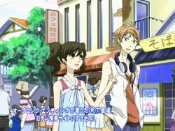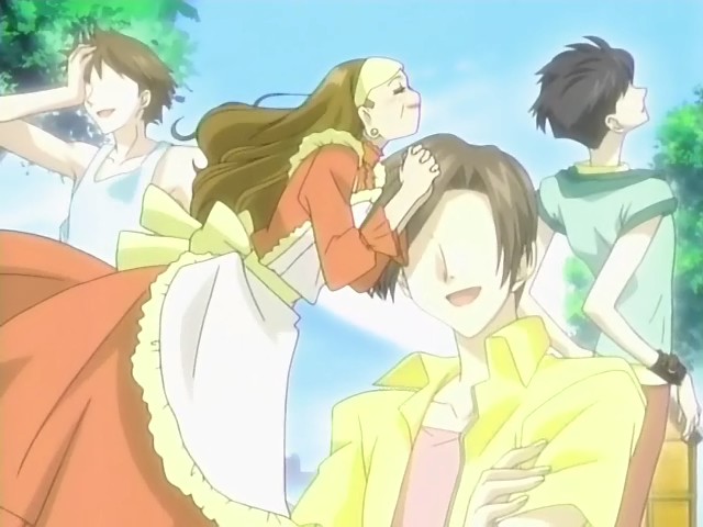 The owner of the pensione is a woman named Misuzu…or rather a man dressed as a woman named Misuzu, one of Ranka-san’s old friends from work. It seems that Haruhi’s father is traveling, and since he was worried about Haruhi, he left her in the care of Misuzu. The Host Club members realize that this job is why Haruhi turned down their each of their offers to go away on vacation. Tamaki is angry that they all gave her individual invitations when he was trying to come up with a plan that involved everyone. It’s made worse when he finds out that Haruhi does actually have a cell phone, given to her by the twins. It’s limited to just friends, and Tamaki is classified as a senpai. Tamaki insists that his father status should be under the friends category, but Haruhi disagrees.