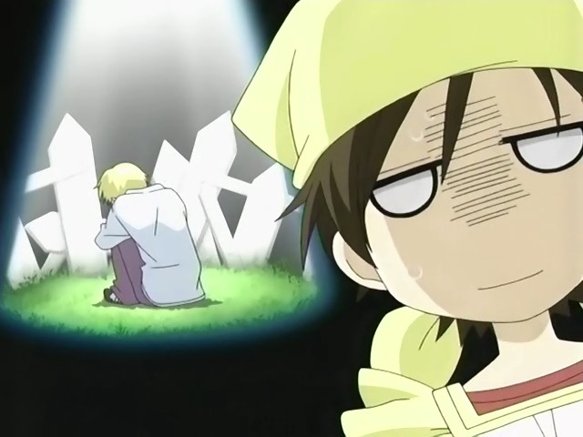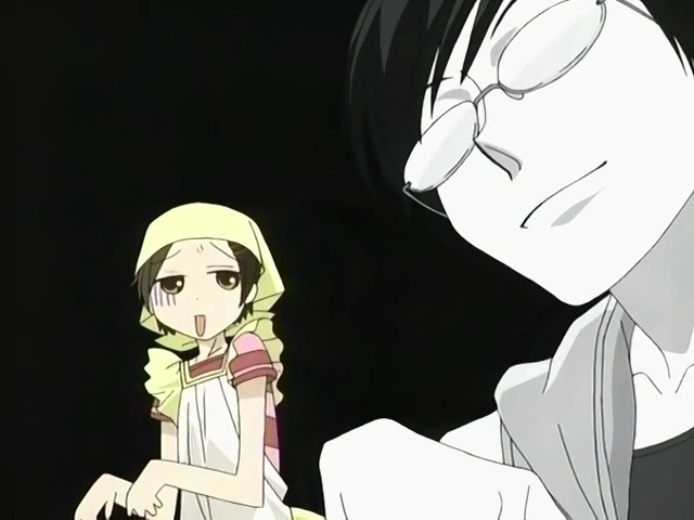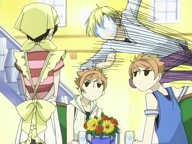 The twins got a lot of the focus this episode. Notice when Hikaru suggested to Haruhi that the three of them sleep together, the uninterested look on Kaoru’s face. Then they suggest that Hikaru really was concerned after the accident by how he was trembling when he was holding Kaoru’s hand. This will all (kind of) come into play next week, with this new rival which will eventually lead to Hikaru going on a date with Haruhi. Should be lots of fun 🙂