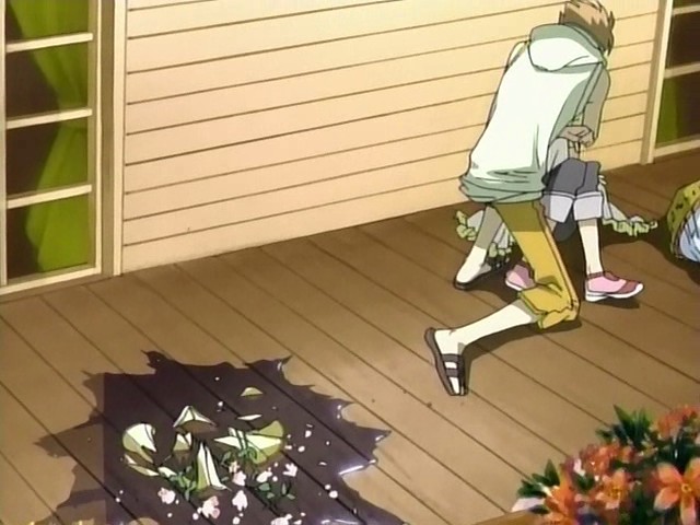 The next morning, Kaoru wakes up on the floor. Hikaru apologizes, but Kaoru stays a bit pissed off. The two try to order all sorts of fancy breakfast food, but none of it is on the menu. Tamaki jumps in and shows them a Karuizawa breakfast, all of which he learned from Misuzu early this morning. In fact, Tamaki has even made a vacation guidebook filled with various rules. Hikaru notices that rule number five is to get out of bed at 6AM, and Kaoru wonders if Kyoya and Honey are able to follow this rule. Tamaki backs off because he remembers how he was met with Eyes of the Demon King from Kyoya and Eyes of a Monster from Honey when he tried to get them up. It is at this time that a delivery boy shows up with fresh produce. Because Misuzu asks, the boy reveals that he’s working at his uncle’s shop for summer vacation. When Misuzu calls Haruhi over to refrigerate the produce, the delivery boy recognizes her name. And upon seeing the boy, Haruhi remembers him as Arai.