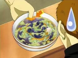 -Napoleon the pig appears beside Harima, but is witness to Tenma telling Harima how much she likes tonjiru (pork miso soup). Napoleon goes crazy and starts running around everywhere, knocking over everyone’s nabe pots.
