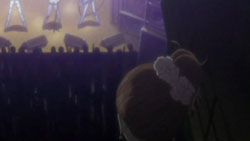 The three arrive at the noisy and packed live house, and Hachi is unable to make it through the crowd to the front of the room. She doesn’t accomplish this until the current band finishes playing and the crowd quickly disperses. But now there’s virtually no audience now for the next band, Blast. Hachi tries to stir something up by talking to the girl next to her about Blast. Little does Hachi know, the girl next to her is a huge Blast fan and knows all about the band. Their conversation succeeds at attracting everyone’s attention and word soon spreads through the live house. First out are Shin, Nobu, and Yasu, who appear with a style that impresses the crowd. When Nana walks out, she immediately notices the girl Hachi was talking to earlier, and that girl offers Nana a rose and a ribbon. Nana ties it to the microphone and then starts the concert. Hachi becomes moved to tears by the music and hopes that Nana doesn’t go far away.