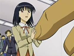 -At Dankousha Publishing, Harima brings Yakumo and meets the editor-in-chief Jingama, a man who is gigantic and quite intimidating. Yakumo stands up to him and asks if it’s his job to threaten new manga artists. Jingama takes a liking to Yakumo and shakes her hand (or rather she shakes his finger).