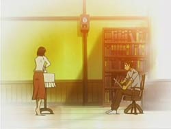 -While Harima is working, Yakumo brings him some snacks. Harima’s figured hunched over the desk reminds Yakumo of her father.