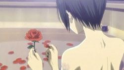 Hachi thinks that the next time she falls in love, she wants it to be with a man who is a little cold. It would be someone who wouldn’t mind her selfishness and someone who would give her a single rose after they fight. On this night, she’s unable to sleep while waiting for Nana to come back from going to see Ren. She suddenly realizes that she was looking at Ren during the concert so much that she forgot to look at her favorite Takumi. As her mind turns back to Nana, Hachi imagines Nana telling Ren off, saying that Blast will surpass Trapnest. Still, since Nana’s not back, Hachi thinks that it surely means all went well. At this time, Ren wakes up in bed and finds Nana no longer in his arms. Remember how she had said she didn’t want to start over with him, Ren despairs a little, but then walks into the bathroom and finds Nana in the tub plucking petals off a rose. Nana says that she’s doing this while the roses still have value because they wither so quickly. Along those lines, she tells Ren not to die.