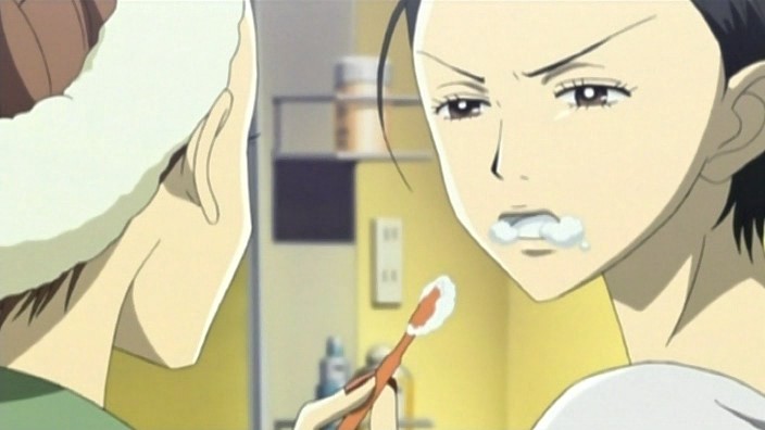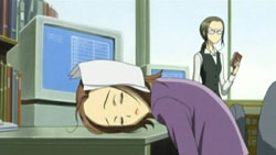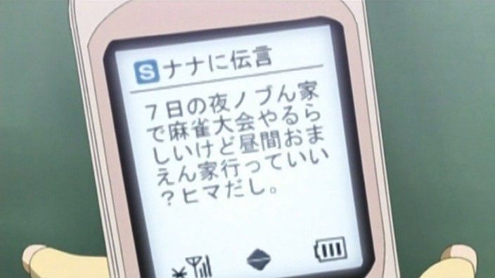 At work the next day, Hachi is lying with her head on her desk feeling depressed about not having a boyfriend when suddenly her cell phone rings. She sees a message from Ren asking if he can come over on the 7th during the day before the mahjong tournament that night. Hachi responded an affirmative and threw in a “darling” for good measure, which Nana isn’t too thrilled about when she hears about it later during practice. Nobu ends up suggesting that they just have the mahjong tournament at Nana’s place and both girls agree. The next days in Hachi’s life are filled with thoughts about meeting Ren in person, causing her to neglect the duties of her job and getting her supervisor really pissed off.